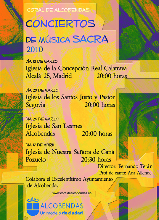 Todos los carteles son propiedad de sus autores. Si no media permiso expreso de estos, sólo está permitida su reproducción para los fines de difusión de las actividades de la Coral de Alcobendas, para los que fueron creados.